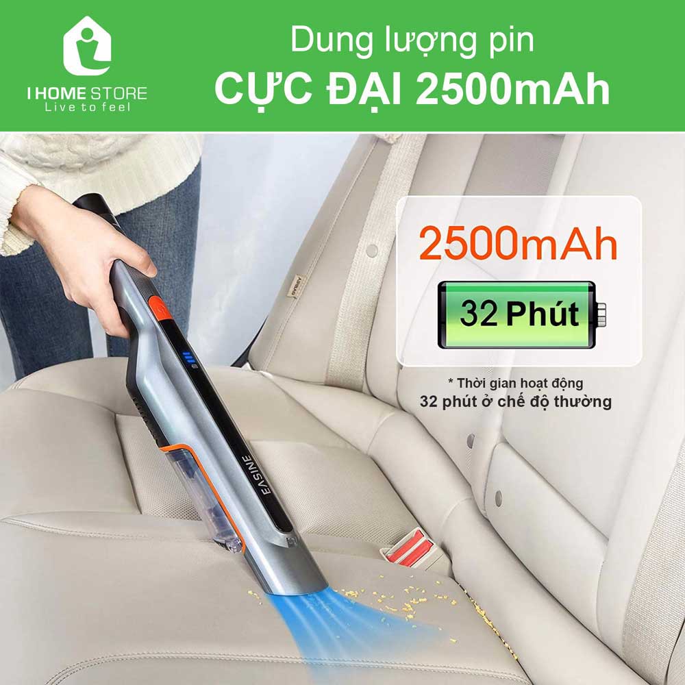 Dung lượng của máy hút bụi cầm tay M50 tới 2500mAh nên bạn có thể sử dụng chúng liên tục trong 32 phút (ở chế độ bình thường). Như vậy, bạn có thể thực hiện được nhiều công việc dọn dẹp hơn, tiết kiệm thời gian hơn.