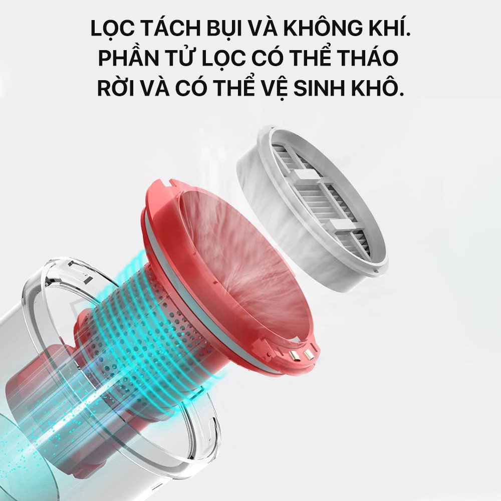 Thiết kế bộ lọc HEPA cùng phương pháp lọc lốc xoáy bên trong với lực ly tâm lớn dễ dàng tách bụi ra khỏi không khí. Bụi lúc này được khóa trong cốc đựng bụi với dung tích 0.6L, trả lại không khí trong lành và sạch sẽ. Bộ lọc này có khả năng lọc các hạt bụi siêu nhỏ không thể thấy bằng mắt thường, giúp cho môi trường sống của bạn trong lành hơn.