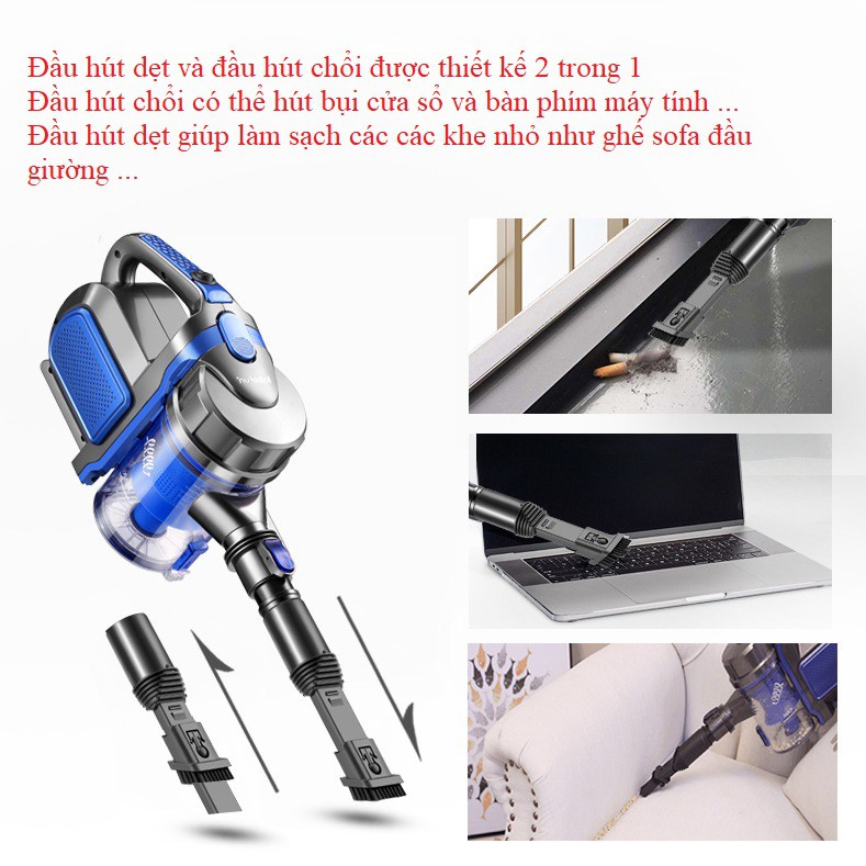 Sản phẩm được thiết kế với đầu hút bụi nhỏ, dài 20cm có thể dễ dàng chui sâu vào mọi ngõ ngách trong nhà cả những nơi khó xử lý nhất.