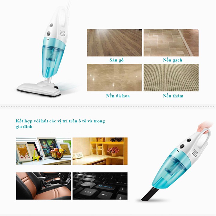 - Bạn có thể gắn cán dài để hút sàn nhà, salon … hoặc có thể tháo rời để thuận tiện hút ở những vị trí gần như bàn phím vi tính, cầu thang, khe tủ…