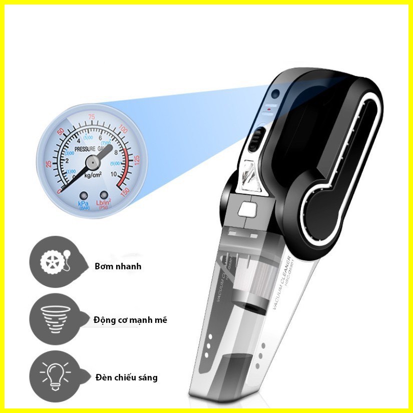 Máy hút bụi cầm tay - Máy hút bụi Ô Tô 4 trong 1 kèm van bơm hơi cao cấp công suất lớn