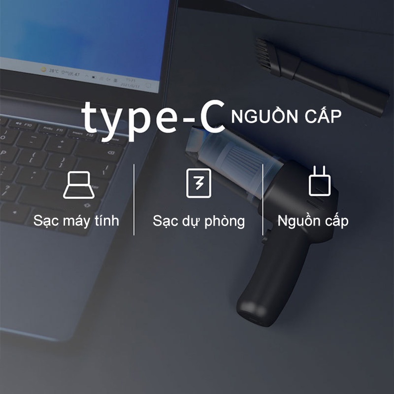 MÔ TẢ SẢN PHẨMMÁY HÚT BỤI KHÔNG DÂY SẠC BẰNG DÂY USB ĐI KÈM, KHÔNG CẦN THAY PIN & CẮM DÂY KHI SỬ DỤNG