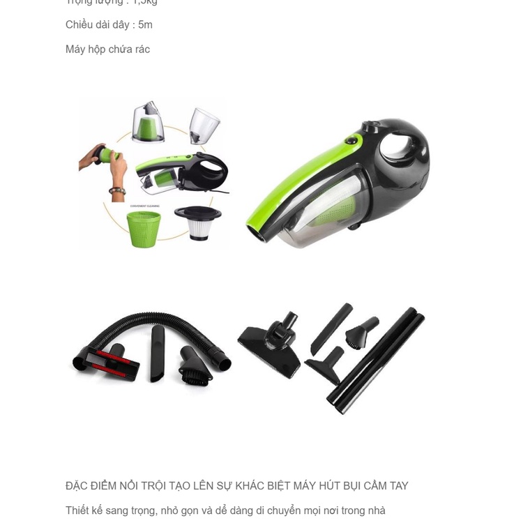 Dung tích chứa bụi 0.5L, trọng lượng: 1,5kg, nguồn điện 220V.