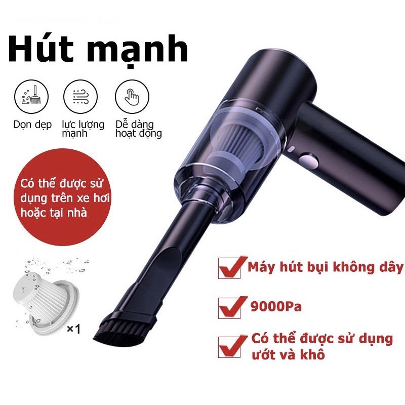 Máy Hút Bụi Cầm Tay Mini 2 in 1 Vacuum Cleaner Bản Nâng Cấp 2021 ⚡️ Lực Hút 9000PA,120W,Đầu Sạc USB Tiện Lợi