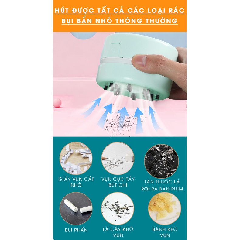 Máy Hút Bụi Cầm Tay Mini Bằng Pin Hút Bụi Bẩn Nhỏ, Bàn Học Tập,Bàn Phím Đa Năng Tiện Lợi (Tặng kèm 2 pin)