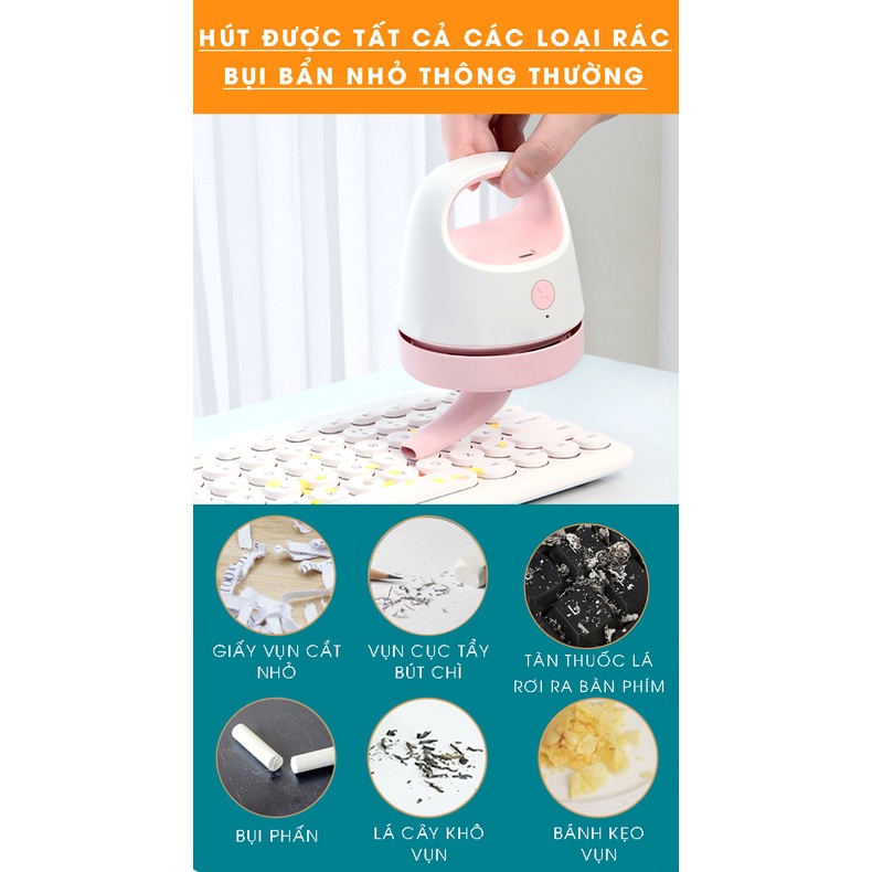 Máy Hút Bụi Cầm Tay Mini Hút Bụi Bẩn Nhỏ, Bàn Học Tập,Bàn Phím Đa Năng Tiện Lợi - Kèm Dây Sạc USB