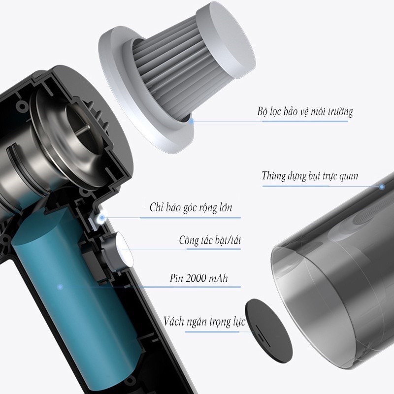 Thiết Bị Điện Gia Dụng > Thiết bị điện gia dụng nhỏ > Máy hút bụi & Thiết bị làm sạch sàn || Máy hút bụi cầm tay mini không dây ô tô giường nệm, Máy hút bụi mini Decor 4.0Còn hàng