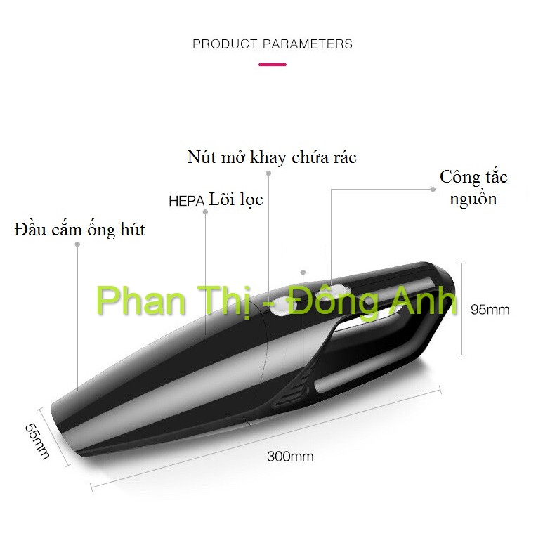 **Máy hút bụi oto, xe hơi, trong nhà , vệ sinh chăn, đệm, giường tủ, khe cửa, hút sạch lông thú, tóc...*Kích thước Máy hút bụi oto: 300mm x 95mm x 55mm.