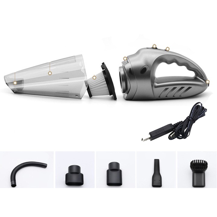 Máy thiết kế độc đáo gồm nhiều kiểu đầu hút khác nhau đem lại nhiều công dụng khác nhau giúp bạn nhanh chóng vệ sinh các vết bẩn, bụi bặm, tàn thuốc...trên xe một cách dễ dàng, ngay cả ở những ngốc ngách khó xử lý máy cũng có thể vệ sinh tới.
