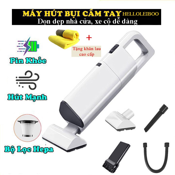 Máy hút bụi cầm tay mini, máy hút bụi giường, ô tô không dây HELLOLEIBOO dùng cho cá nhân, gia đình lực hút 9000PA MHB02