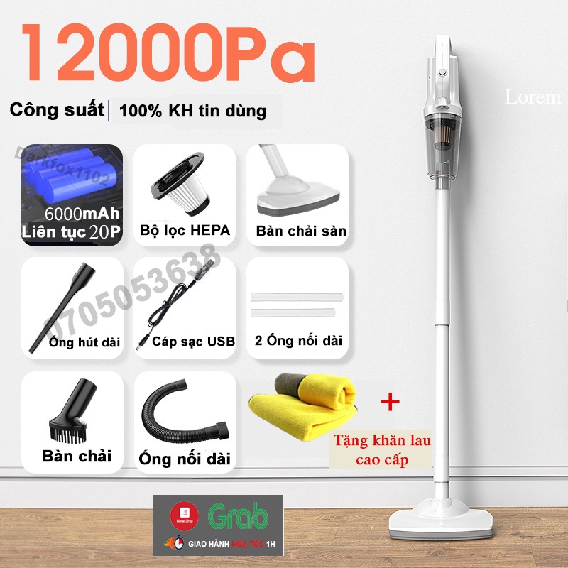 Máy hút bụi cầm tay mini, máy hút bụi giường, ô tô không dây dùng cho cá nhân, gia đình lực hút 12000PAMÁY HÚT BỤI KHÔNG DÂY SẠC BẰNG DÂY USB ĐI KÈM, KHÔNG CẦN CẮM DÂY KHI SỬ DỤNG