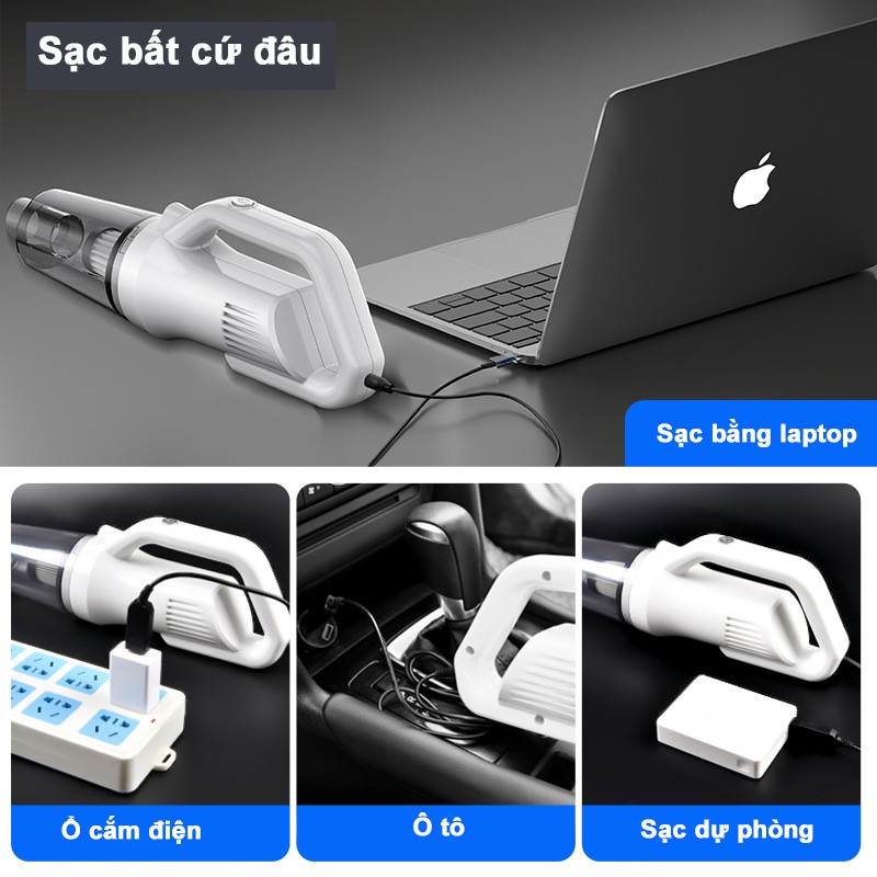 Máy hút bụi cầm tay mini, máy hút bụi giường, ô tô không dây HELLOLEIBOO lực hút 12000PA hút liên tục 20 phút MHB03