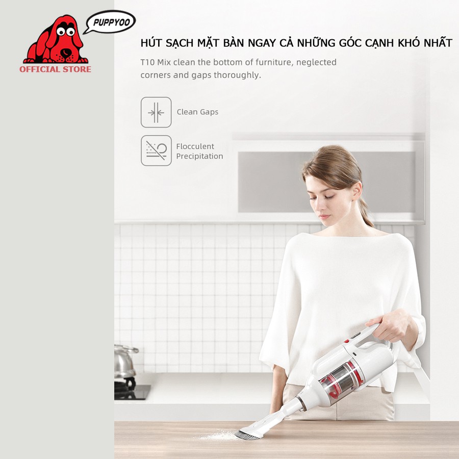 Máy Hút Bụi cầm tay PUPPYOO T10 MIX thiết kế Elbow cực linh hoạt lực hút 17.5kPa hút cực mạnh cực êm - Hàng chính hãng