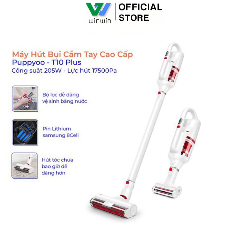 Máy hút bụi cầm tay Puppyoo T10 Pro công suất 250W, lực hút bụi mạnh 17500Pa, thiết kế hiện đại _VimartPUPPYOO là thương hiệu máy hút bụi hàng đầu thế giới với những sản phẩm là Best-Seller trên Amazon.