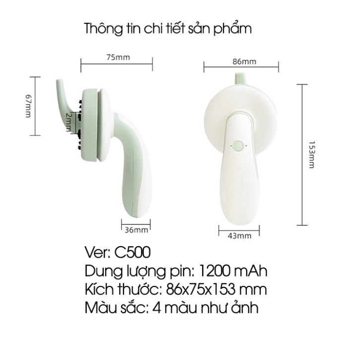 - Chiếc máy hút bụi mini này có dung lượng pin 1200mAh giúp bạn có thể hút bụi trong 2-3 giờ đồng hồ.