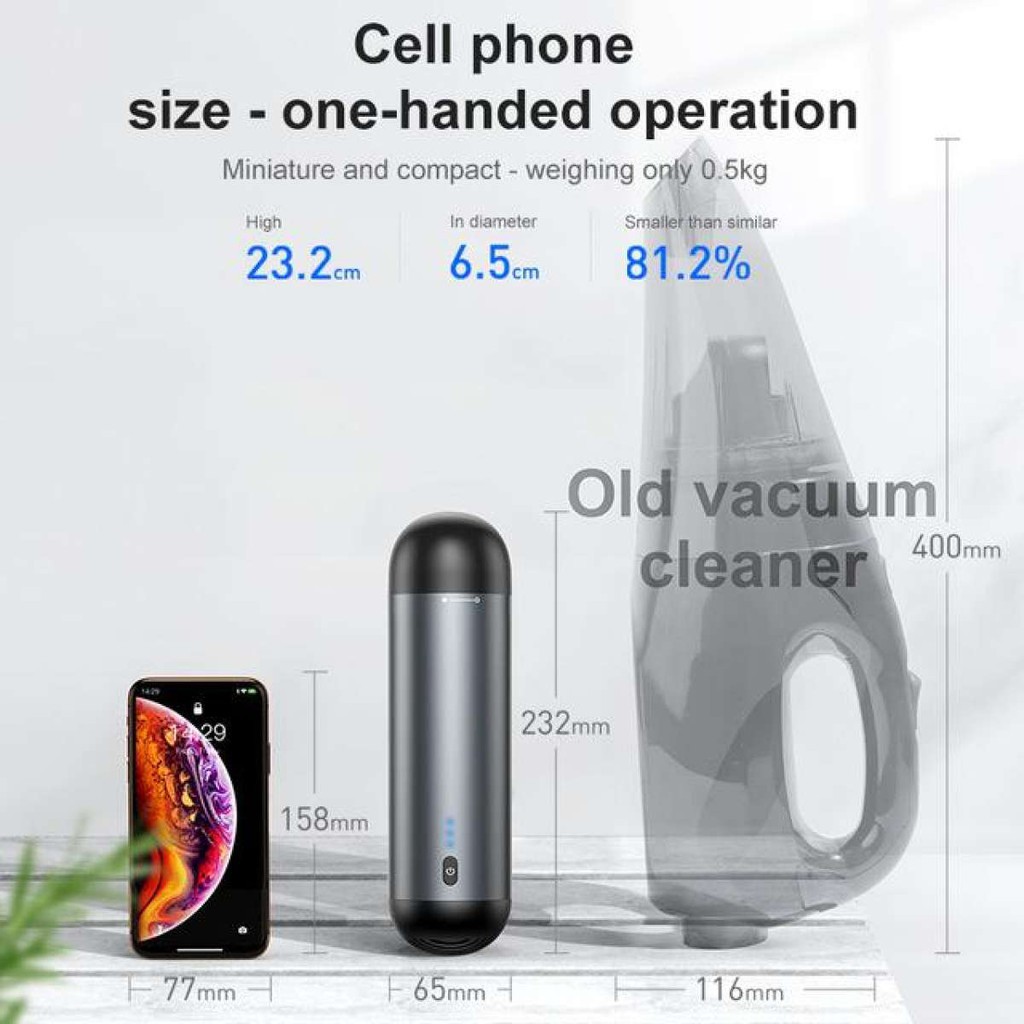 - Máy hút bụi cầm tay Mini Baseus Capsule Cordless Vacuum Cleaner có kích thước nhỏ gọn , kiểu dáng cơ động , thon dài . Phù hợp cho cả nhu cầu sử dụng trong nhà và trên xe hơi .