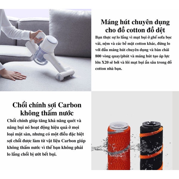 Xiaomi Roidmi Z1 sở hữu lực hút mạnh mẽ - máng hút lớn 25cm kèm chổi combo bàn chải chữ V giúp làm sạch tối ưu trên mọi loại mặt sàn, ngoài ra X20 được trang bị thêm hệ thống lau được lắp ngay phía sau máng hút tháo lắp tiện lợi dễ dàng - ưu điểm có thể dùng kèm theo nước lau sàn.