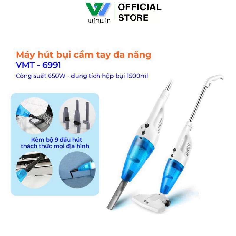 - Máy hút bụi mini cầm tay 600W kiểu đứng với kiểu dáng nhỏ gọn, thiết kế 2 trong 1 giúp bạn linh động sử dụng máy để hút bụi sàn nhà, salon, bàn ghế,... hoặc có thể tháo rời tay cầm để hút các góc cạnh nhỏ hẹp, hút ô tô, hút bàn phím máy tính, cầu thang... giúp cho mọi vị trí trong ngôi nhà bạn luôn được làm sạch.
