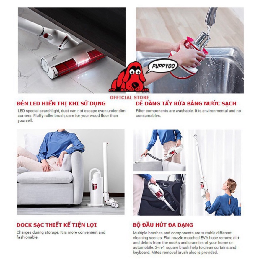 Thiết Bị Điện Gia Dụng > Thiết bị điện gia dụng nhỏ > Máy hút bụi & Thiết bị làm sạch sàn || Máy hút bụi cao cấp PUPPYOO T10 Plus lực hút bụi mạnh 19000Pa pin 8cell bền bỉ_VimartCòn hàng