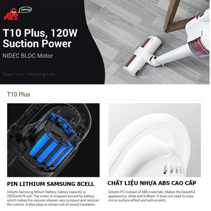 Giới thiệu Máy hút bụi cao cấp PUPPYOO T10 Plus lực hút bụi mạnh 19000Pa pin 8cell bền bỉ_Vimart