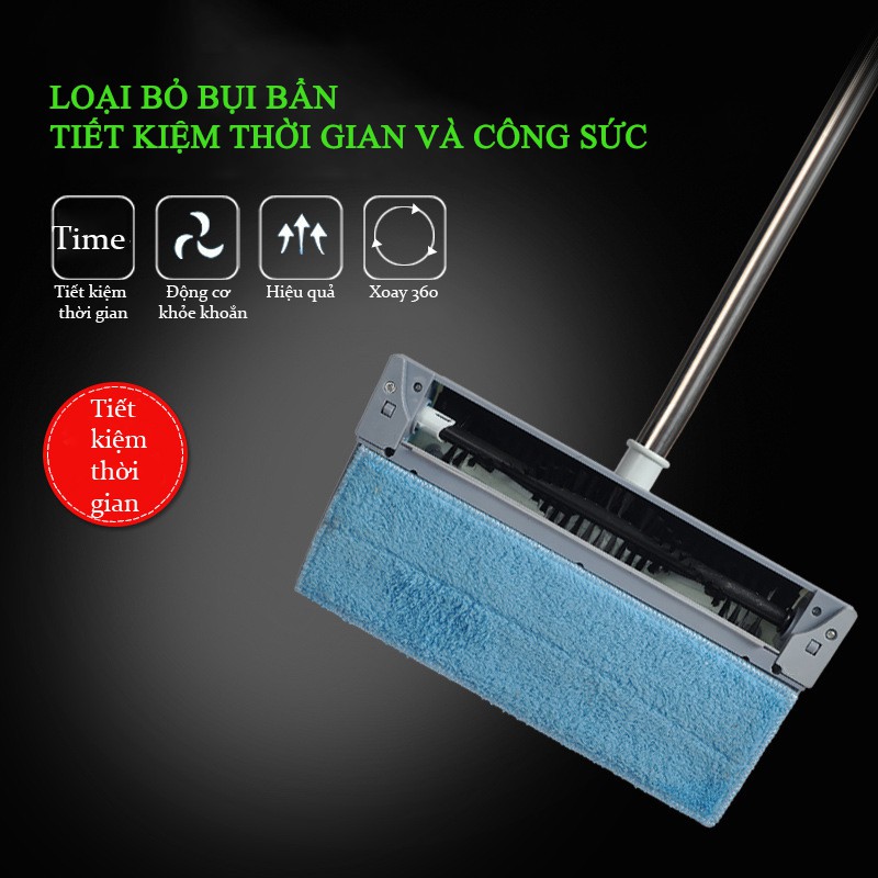 • Chổi điện lau hút bụi không dây dọn dẹp nhanh với 2 tác vụ với chổi điện lau hút bụi không dây sau khi dọn và hút hết bụi bẩn thông thường, dưới mặt đáy có lớp vải lau sẽ lau sạch luôn nơi vừa dọn.