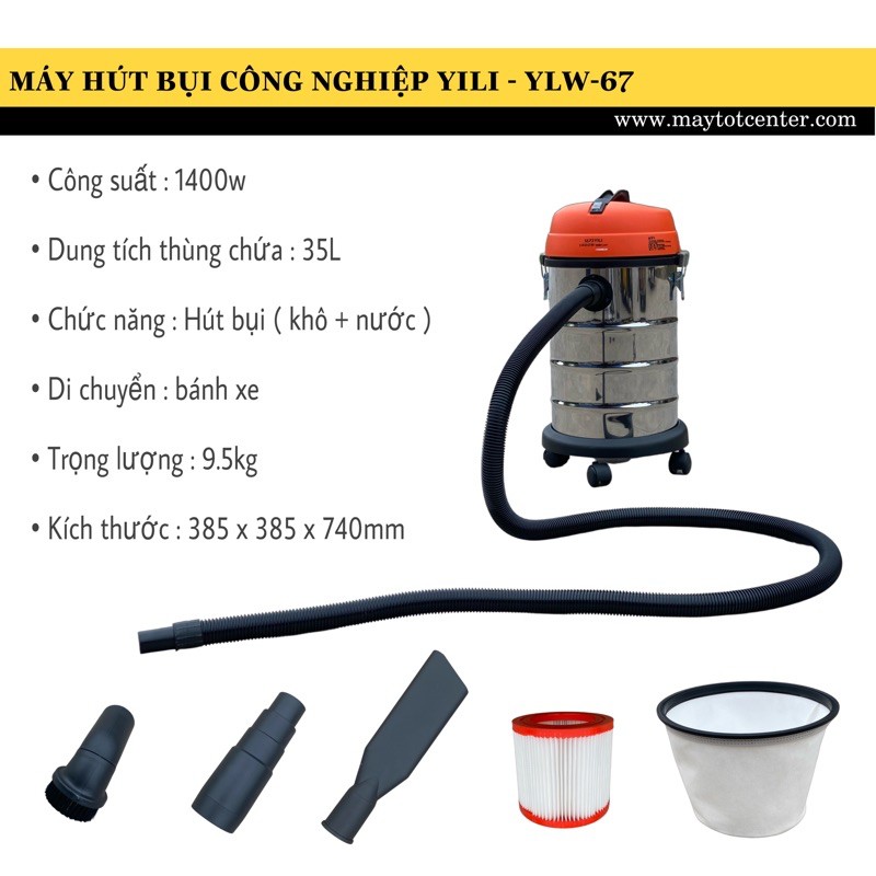Máy hút bụi công nghiệp giá rẻ YiLi - Model YLW67- Công suất mạnh: 1400w
