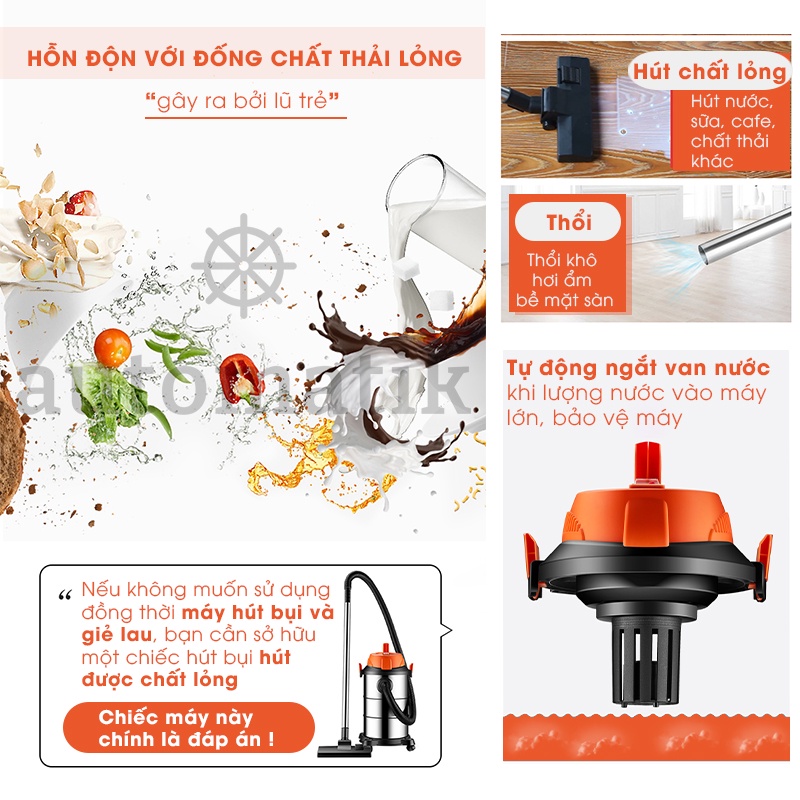 Giới thiệu Máy Hút Bụi Công Nghiệp Gia Đình, Nhà Xưởng, Ô Tô Xe Hơi, Sofa, Nhà Cửa M15 + Tặng Bộ 09 Đầu Hút - Automatik