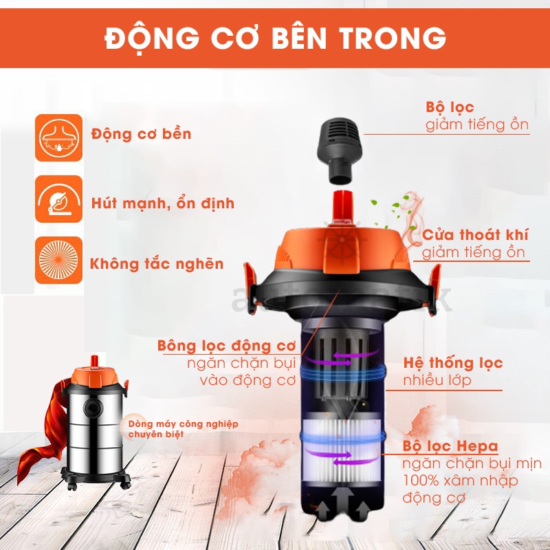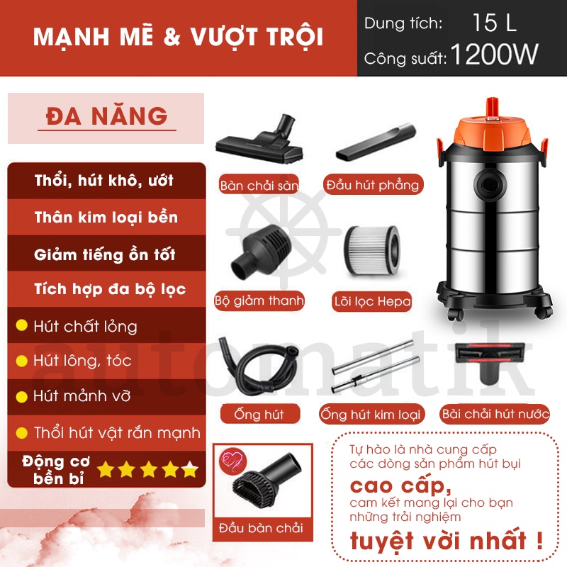 Máy Hút Bụi Công Nghiệp Gia Đình, Nhà Xưởng, Ô Tô Xe Hơi, Sofa, Nhà Cửa M15 + Tặng Bộ 09 Đầu Hút - Automatik