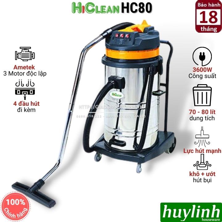Giới thiệu [Mã ELHAMS5 giảm 6% đơn 300K] Máy hút bụi công nghiệp Hiclean HC80 - 80 lít - 3600W - 3 motor - Hút bụi Khô và Ướt