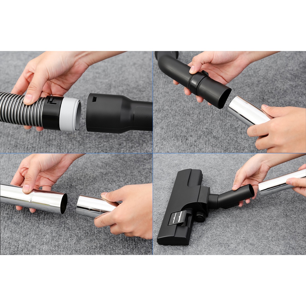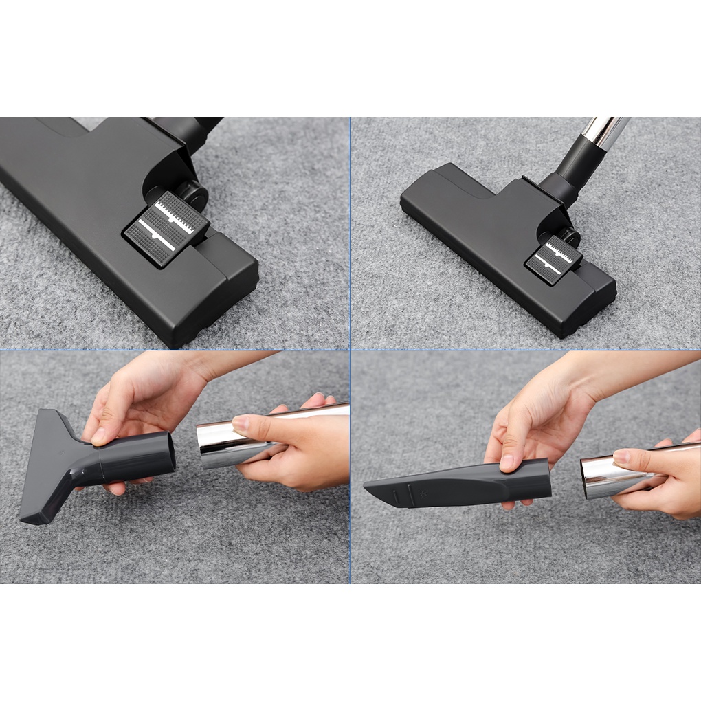 - Ống nối bằng kim loại bền tốt, thêm 2 đầu hút: đầu hút khe, đầu hút sàn nhỏ, làm sạch toàn diện.