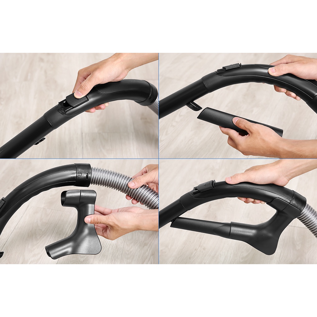 ● Kết nối với bộ đầu hút đa năng giúp máy hút bụi dễ dàng tiếp cận và làm sạch hiệu quả mọi ngóc ngách