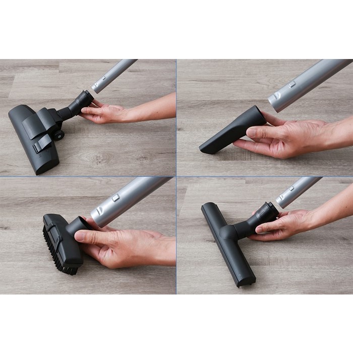 ●Máy hút bụi dạng hộp với đầu hút sàn cứng, đầu hút khe, đầu hút nệm hỗ trợ dọn dẹp tốt mọi ngóc ngách trong ngôi nhà