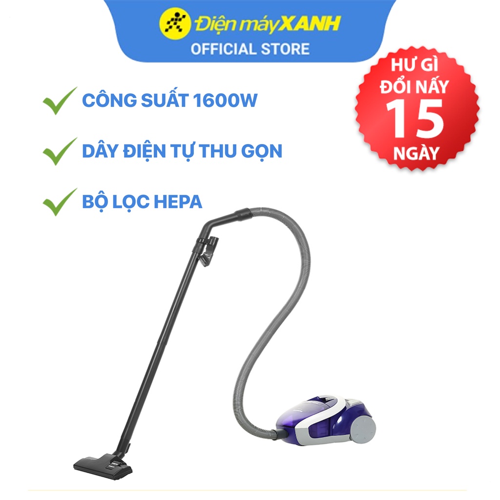 ● Máy hút bụi Panasonic thiết kế đơn giản, màu xanh trẻ trung, thanh lịchDễ dàng di chuyển và làm sạch nhà cửa với chiều dài dây dẫn đến 5.1m.
