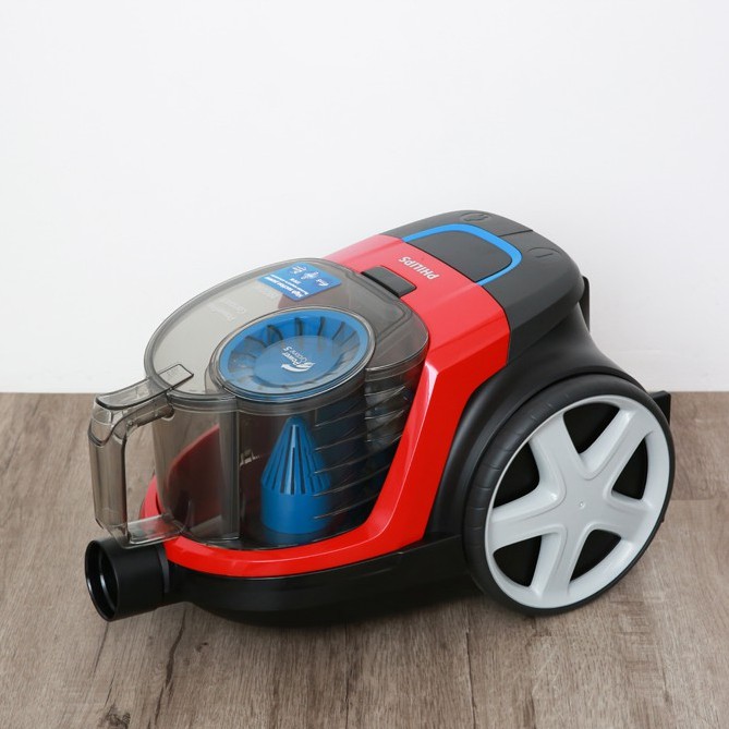 ● Máy hút bụi Philips màu đỏ nổi bật, kích thước nhỏ gọn bánh xe lớn di chuyển thật nhẹ nhàng● Hộp chứa bụi dung tích 1.5 lít đủ dùng để vệ sinh không gian gia đình, văn phòng...