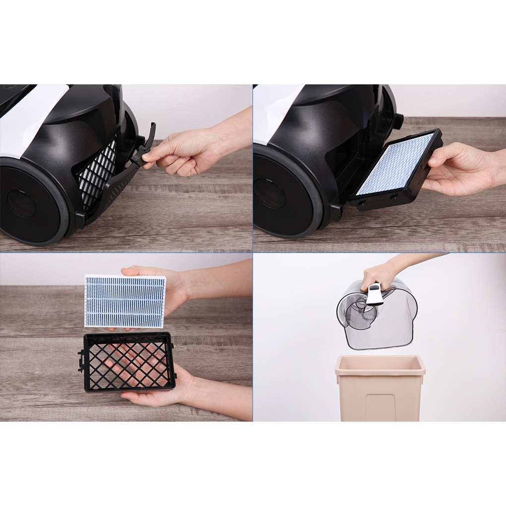 Máy hút bụi dạng hộp trang bị bộ lọc HEPA H13 hiện đại, giúp loại bỏ bụi bẩn lên đến 99,95%, kể cả các hạt bụi nhỏ nhất mang lại không gian sống luôn sạch sẽ.