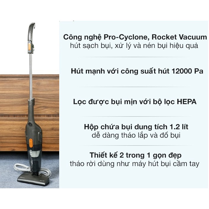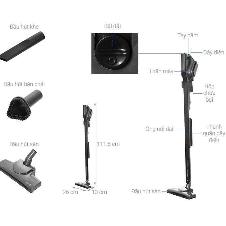 - Tiện ích: Thiết kế 2 trong 1 (tháo rời sử dụng như máy hút bụi cầm tay)