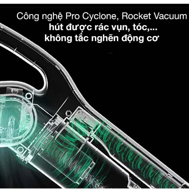 Máy hút bụi Deerma cầm tay sử dụng công nghệ lốc xoáy Pro Cyclone, Rocket Vacuum hiện đại, hút được các mảnh vụn lớn, bụi, tóc,... mà không tắt nghẽn động cơ, tiết kiệm điện năng hiệu quả.• Thông số kỹ thuật Máy hút bụi Deerma cầm tay