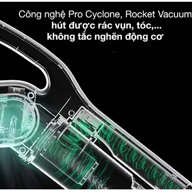Máy hút bụi Deerma cầm tay sử dụng công nghệ lốc xoáy Pro Cyclone, Rocket Vacuum hiện đại, hút được các mảnh vụn lớn, bụi, tóc,... mà không tắt nghẽn động cơ, tiết kiệm điện năng hiệu quả.• Thông số kỹ thuật Máy hút bụi Deerma cầm tay