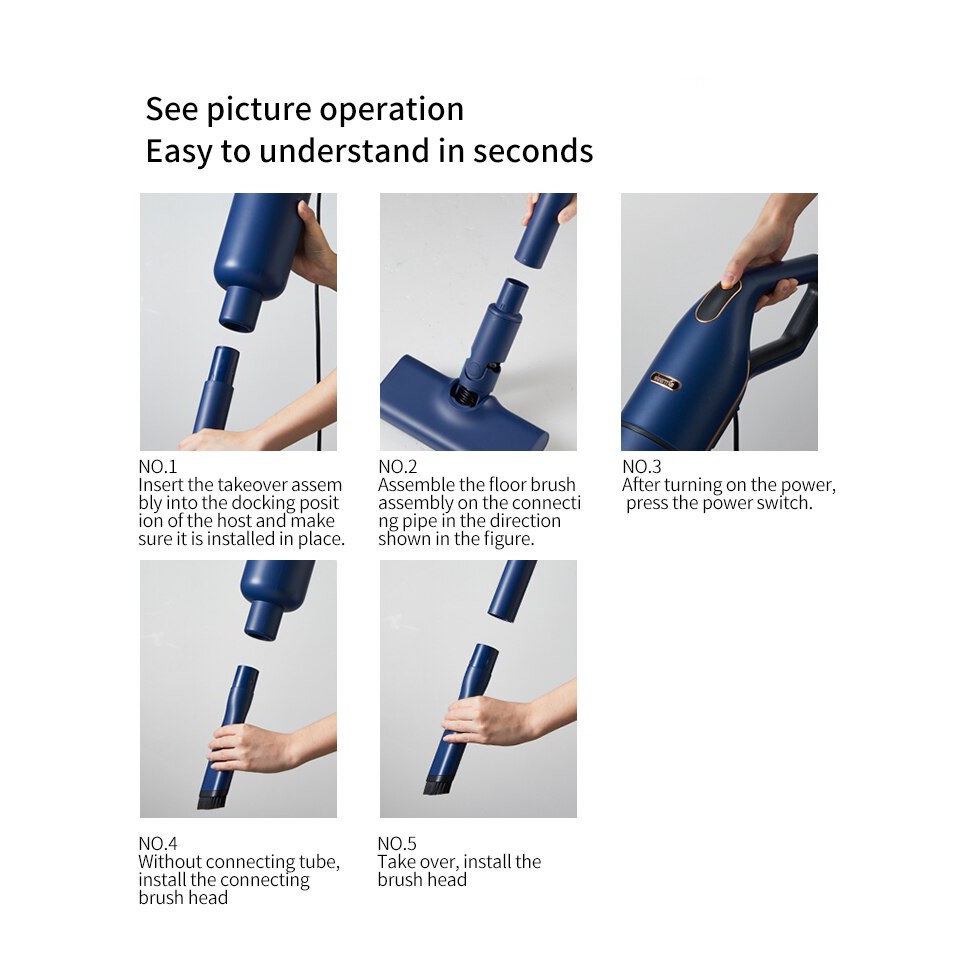 ● Làm sạch diện tích rộng: Cắm và hút, không cần chờ đợi! Dây nguồn dài 5m có thể hút bụi phạm vi rộng tùy thích, mọi công việc vệ sinh đều hiệu quả.