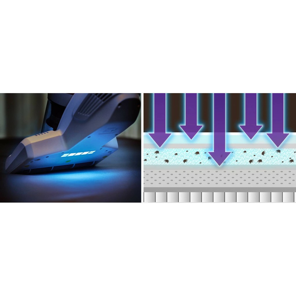 ⭐ Đặc biệt phía dưới thân máy là một bộ đèn diệt khuẩn bằng tia cực tím cũng được trang bị UV-C 160mm phát ra tia cực tím với bước sóng 253.7nm, công suất đèn là 6W. Tia cực tím này có khả năng giết chết các loại bọ, rệp, vi khuẩn một cách triệt để. Tuy nhiên tia cực tím được biết đến là có ảnh hưởng không tốt đến sức khỏe người dùng. Chính vì vậy mà thiết bị cũng được trang bị công nghệ cảm biến thông minh để ngăn chặn hoàn toàn rò rỉ tia cực tím đảm bảo an toàn cho người sử dụng.