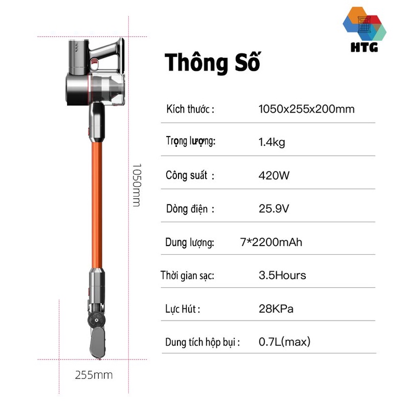 ✅Kích thước máy : Lắp đầu hút sàn cùng ống nối dài : 1050x255x200mm