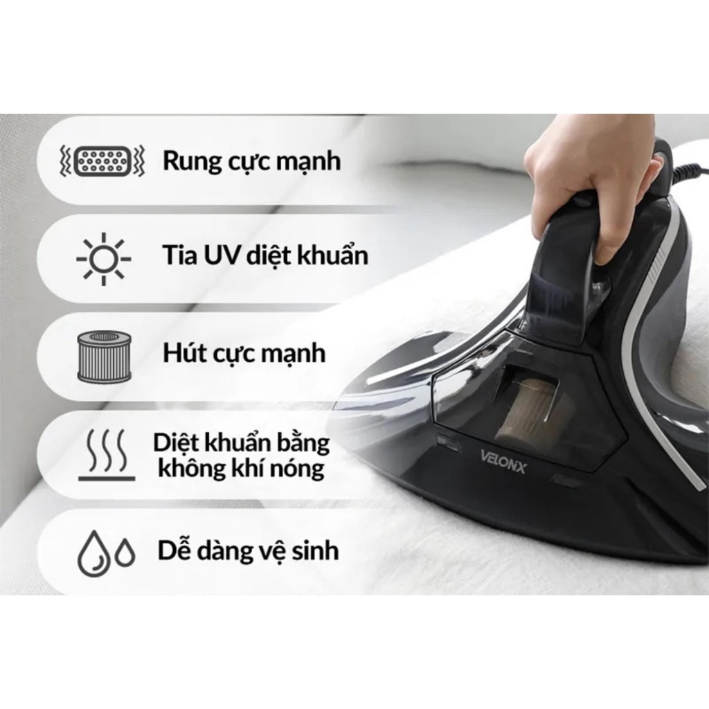 Thiết Bị Điện Gia Dụng > Thiết bị điện gia dụng nhỏ > Máy hút bụi & Thiết bị làm sạch sàn || Máy hút bụi diệt khuẩn chăn nệm Velonix version 2021 - Trắng và Đen [Hàng nội địa Hàn]Còn hàng