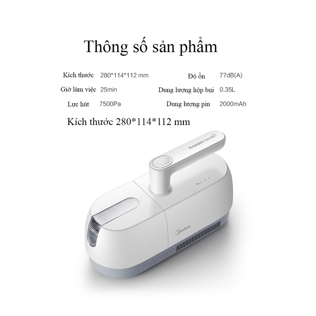 ***** Giới thiệu máy hút bụi diệt khuẩn giường nệm Midea B5D có đèn UV, chạy pin.1.Thông số kỹ thuật