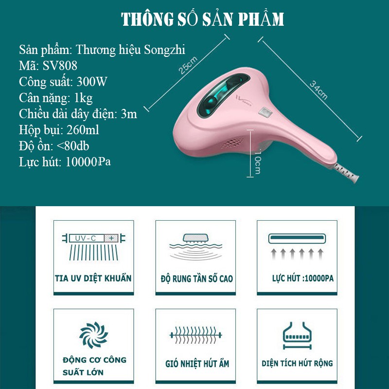 Giới thiệu Máy hút bụi diệt khuẩn tia UV giường gối đệm SONGZHI Máy hút bụi gia đình cao cấp Hút ẩm Khử khuẩn