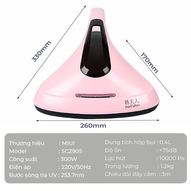 Máy Hút Bụi giường nệm & Vệ Sinh Giường Nệm Cầm Tay HANFUREN SC 2905 Thông số kỹ thuật: