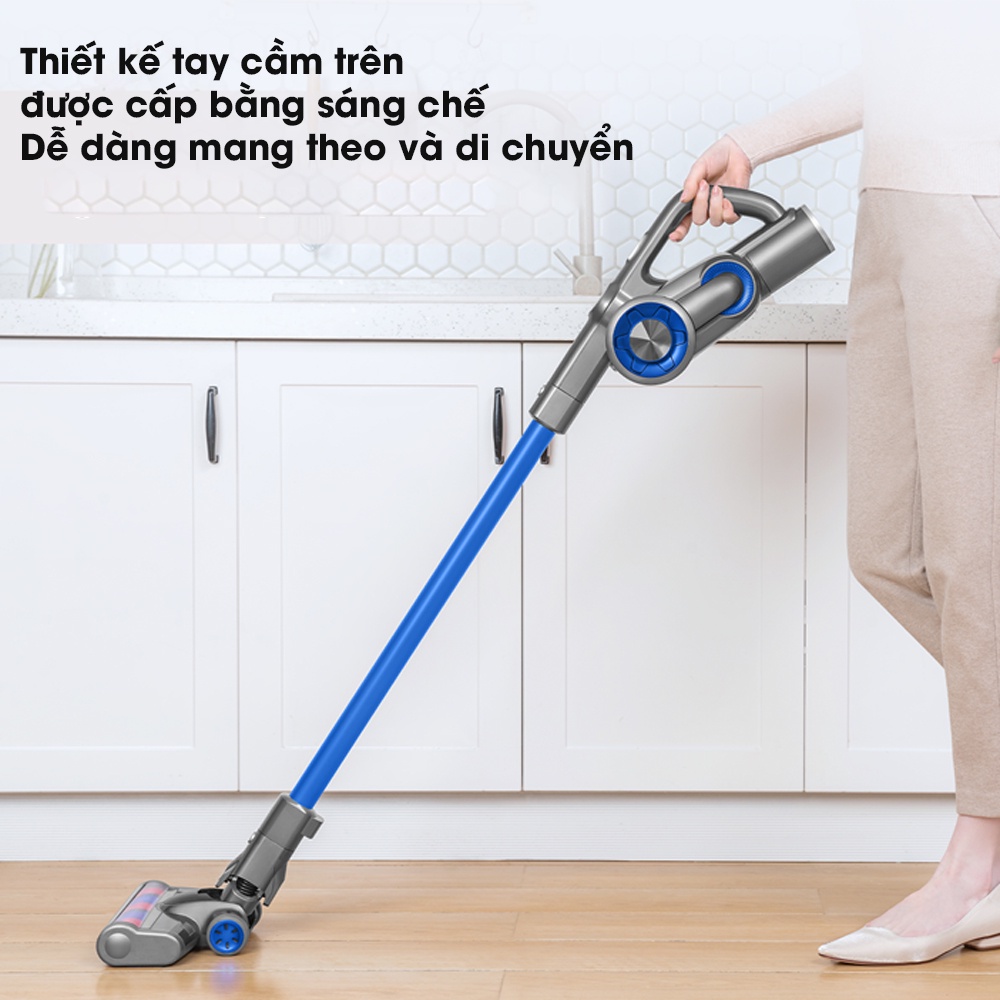 - Thiết kế: trọng lượng nhẹ chỉ 1.49kg, dễ dàng mang theo và di chuyển. Cánh tay, ống hút bụi và tấm lót sàn nằm trên cùng một đường thẳng trong quá trình làm sạch, tiết kiệm công sức hơn trong quá trình làm sạch.