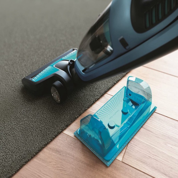 - Với các nam châm trên ngăn chứa nước, bạn có thể tháo lắp dễ dàng hệ thống lau sàn vào đầu hút