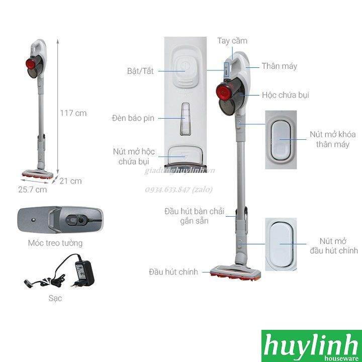 - Phân loại: Máy hút bụi không dây, dạng cán