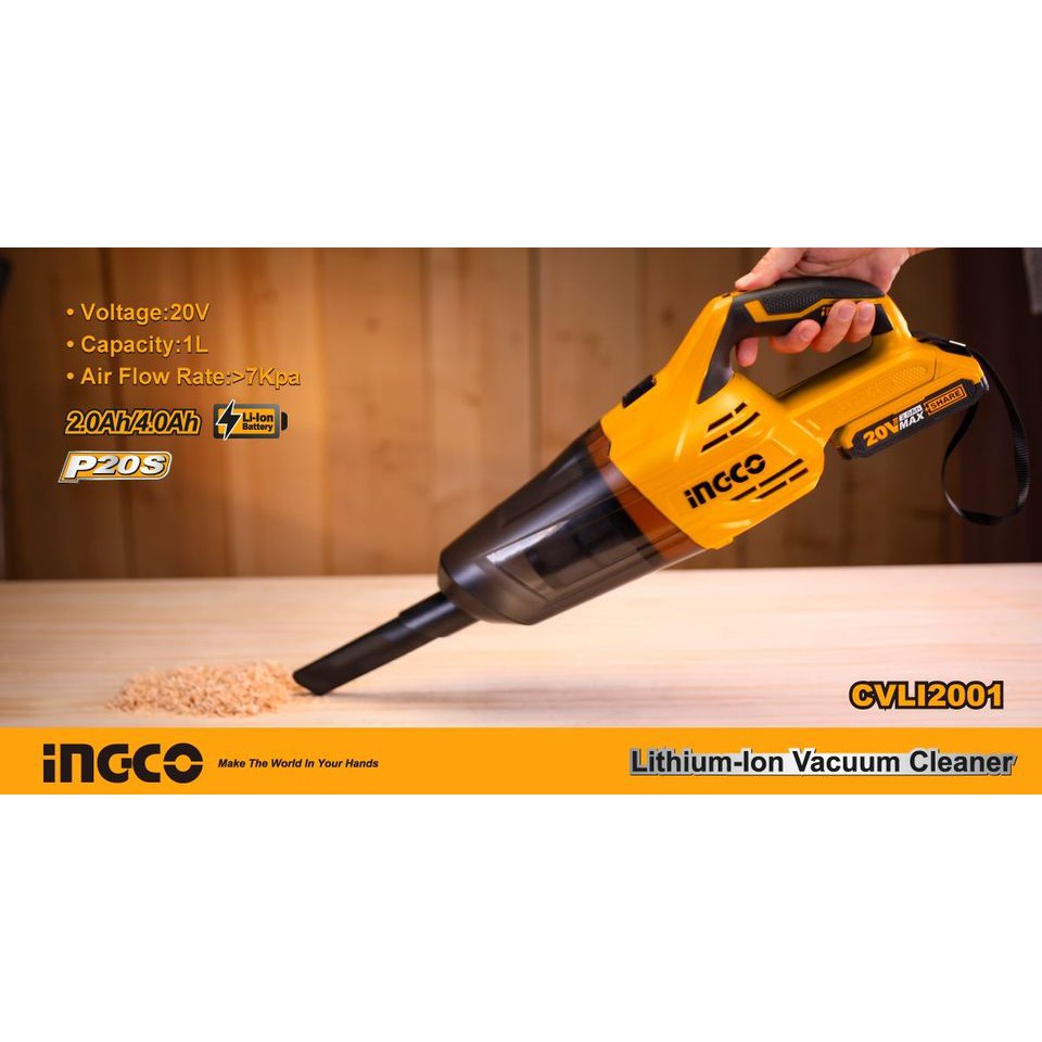 Giới thiệu MÁY HÚT BỤI DÙNG PIN INGCO 20V CVLI2001 ( không kèm pin và sạc )