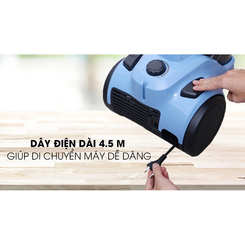 Tiện ích: Công nghệ hút xoáy Cyclonic xử lý và nén bụi hiệu quả, Dây điện tự thu gọn, Bánh xe tiện di chuyển